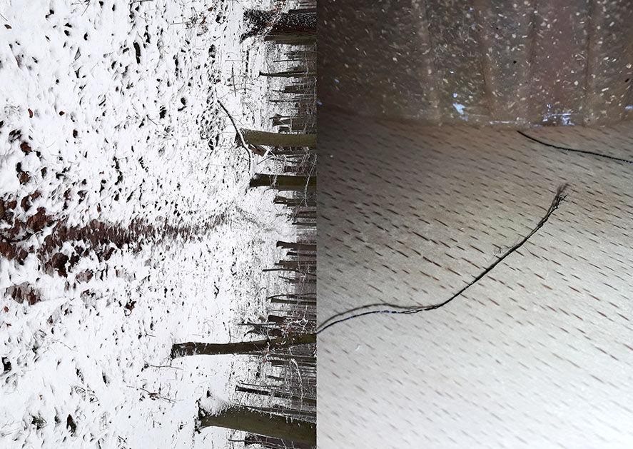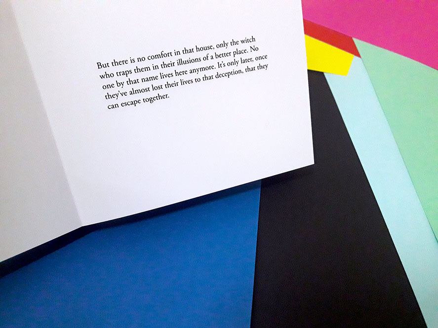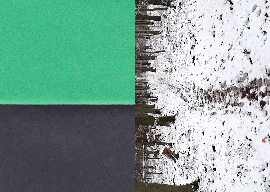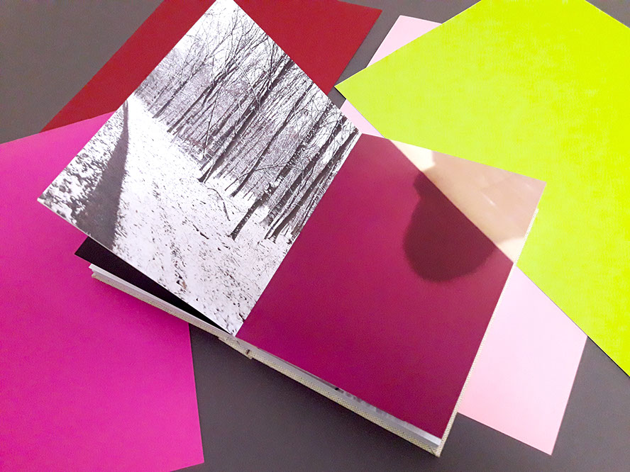 A series of prints of variable sizes, Lichenization takes its title from the imaginary conjugation of the plant species Lichen—that simple and often beautiful parasitic growth that can form on rocks and trees. Here, the artists' book "Into the Forest" is put into scene as an object against different colour backdrops, creating an additional, parasitic layer of meaning to the original work.