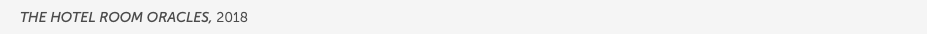 The Hotel Room Oracles is an ongoing project that explores the interaction between video, still image and text; between what we know about an image, and what the image itself shows us. The series of still images and texts from 2018 utilize and expand upon the film fragments from 2015, that themselves claim to be excerpts from a longer, lost film.
